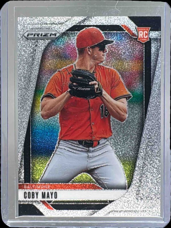 The Coby Mayo 2025 Prizm #70 Glitter Rookie card is 1 of 33 Coby Mayo's card variations in the 2025 Prizm set being tracked by Sports Card Investor, including Base, Blue Ice, Green, Green Ice, and Pink Ice.