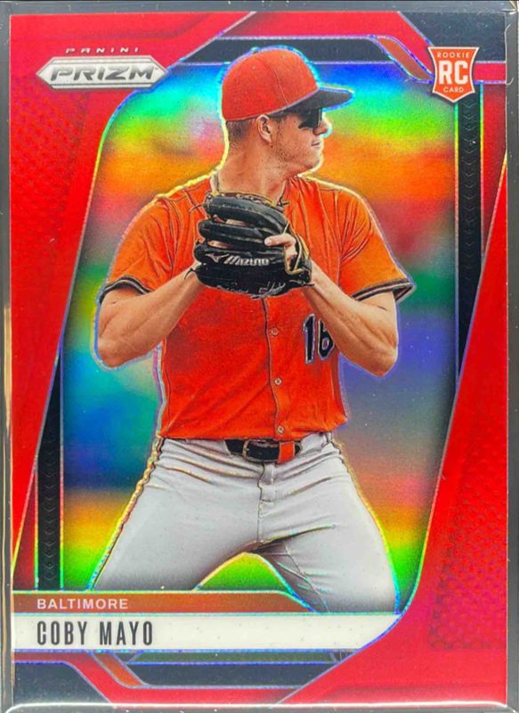 The Coby Mayo 2025 Prizm #70 Red /299 Rookie card is 1 of 33 Coby Mayo's card variations in the 2025 Prizm set being tracked by Sports Card Investor, including Base, Blue Ice, Glitter, Green, and Green Ice.