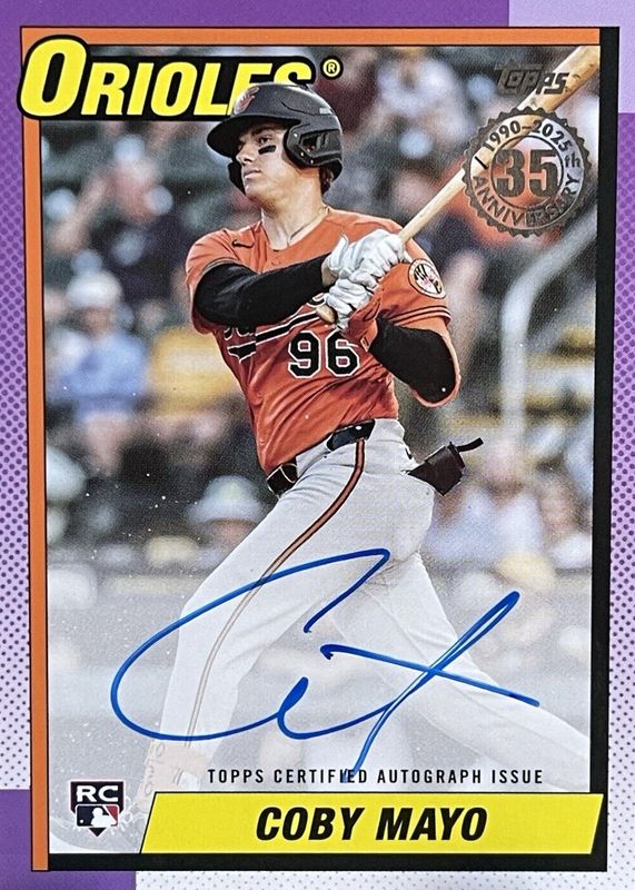 Coby Mayo 2025 Topps Series 1 1990 35th Anniversary Auto Rookie Orioles