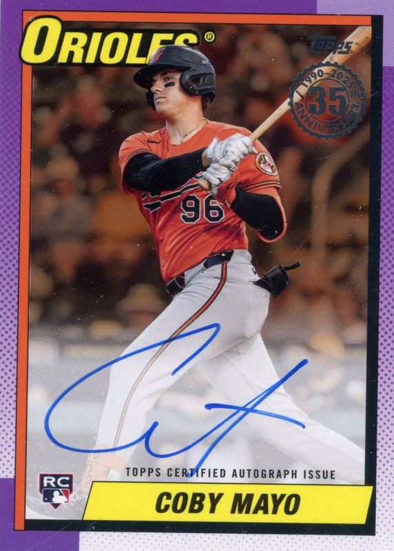 2025 Topps Coby Mayo 1990 35th Anniversary Autograph Auto Rookie Rc Gold /50