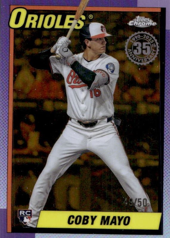 Coby Mayo 2025 Topps Chrome #90CB-17 1990 Topps Baseball - Gold Refractor /50 Rookie RAW Price Guide