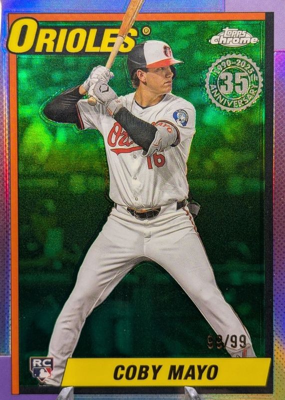 2025 Topps Chrome Coby Mayo Green Refractor 1990 35th Anniversary /99 🔥 Orioles