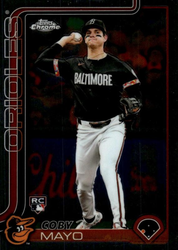 The Coby Mayo 2025 Topps Chrome #120 Base Rookie card in Raw condition has moved up $0.20 (+20.2%) in the last 30 days and was last sold for $1.19 .