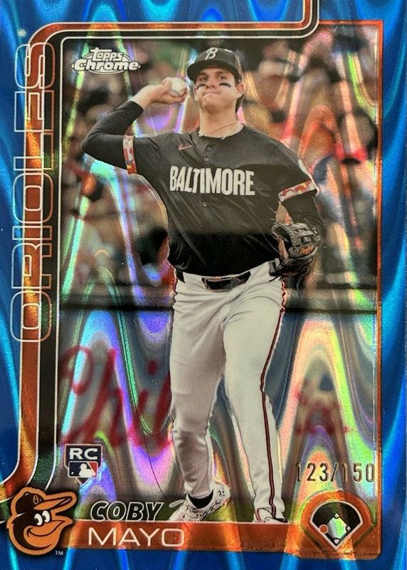 Coby Mayo 2025 Topps Chrome #120 Blue Raywave Refractor/150 RC