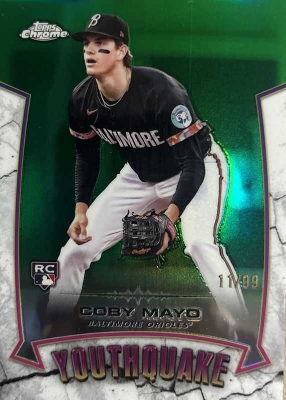2025 Topps Chrome Coby Mayo YouthQuake RC Green Refractor Rookie #9/99 Orioles