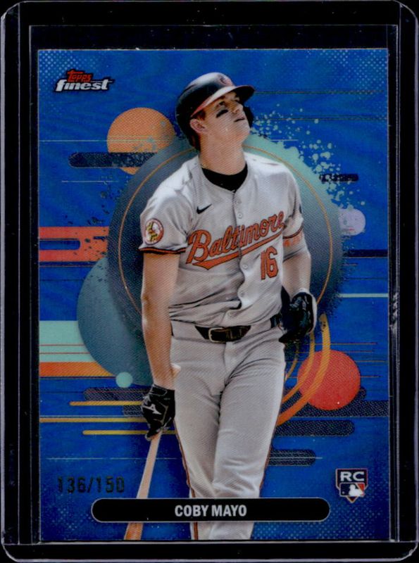 The Coby Mayo 2025 Topps Finest #188 Base Uncommon - Blue Refractor /150 Rookie card is 1 of 161 Coby Mayo's card variations in the 2025 Topps Finest set being tracked by Sports Card Investor, including Common, Rare, Uncommon, Common - Checkerboard Refractor, and Common - Refractor.
