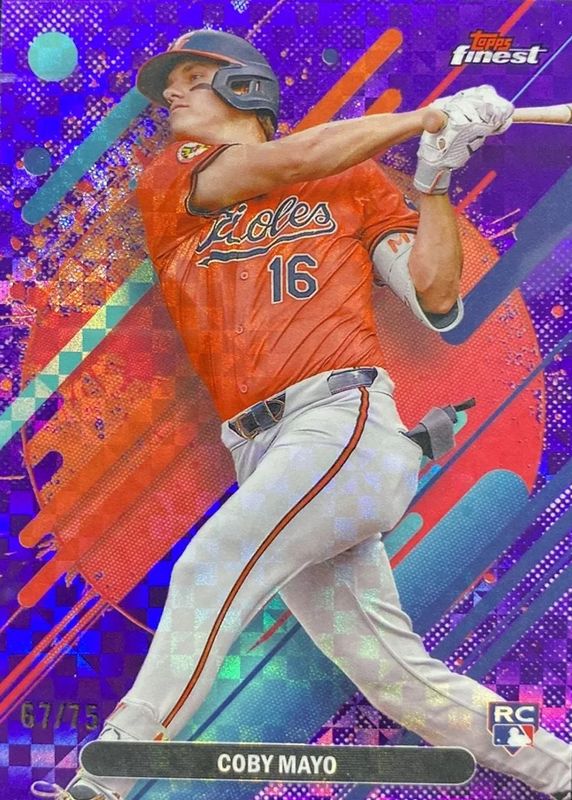 Best Prices Available For Sale of Coby Mayo 2025 Topps Finest #255 Rare - Purple Checkerboard Refractor /75
