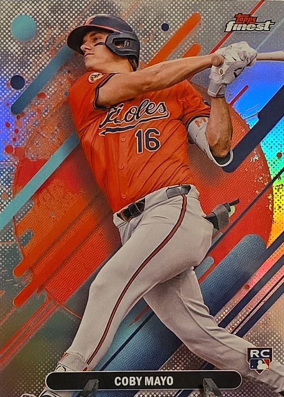 This card is 1 of 161 Coby Mayo's card variations in the 2025 Topps Finest set being tracked by Sports Card Investor, including Common, Rare, Uncommon, Common - Checkerboard Refractor, and Common - Refractor.