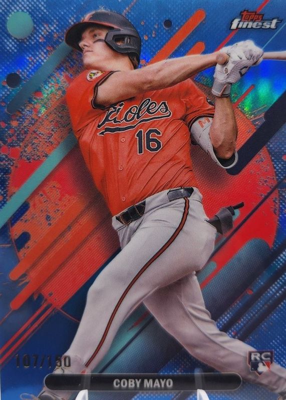 This card is 1 of 161 Coby Mayo's card variations in the 2025 Topps Finest set being tracked by Sports Card Investor, including Common, Rare, Uncommon, Common - Checkerboard Refractor, and Common - Refractor.