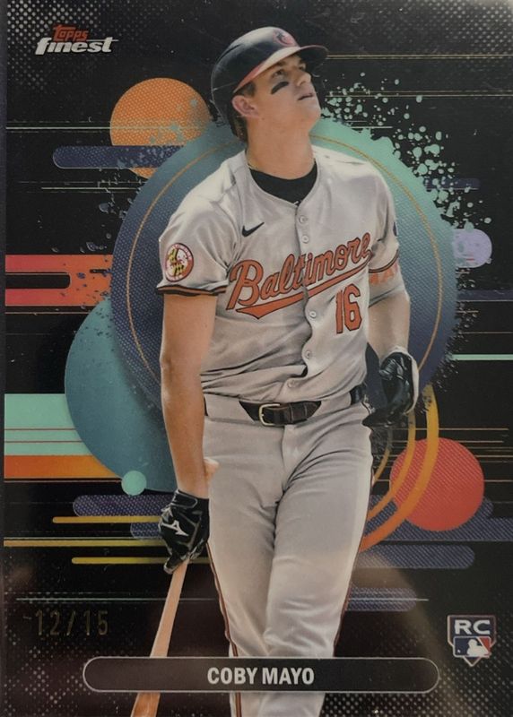 The Coby Mayo 2025 Topps Finest #188 Uncommon - Black Refractor /15 Rookie card in Raw condition has not changed in price in the last 30 days and was last sold for $25.50 .