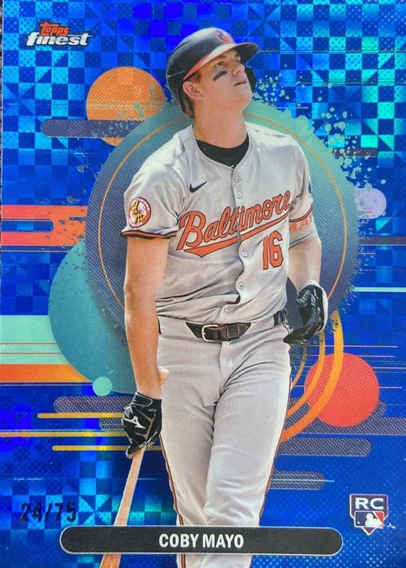 2025 Topps Finest Baseball #188 Coby Mayo /75 Blue Checkerboard Refractor RC