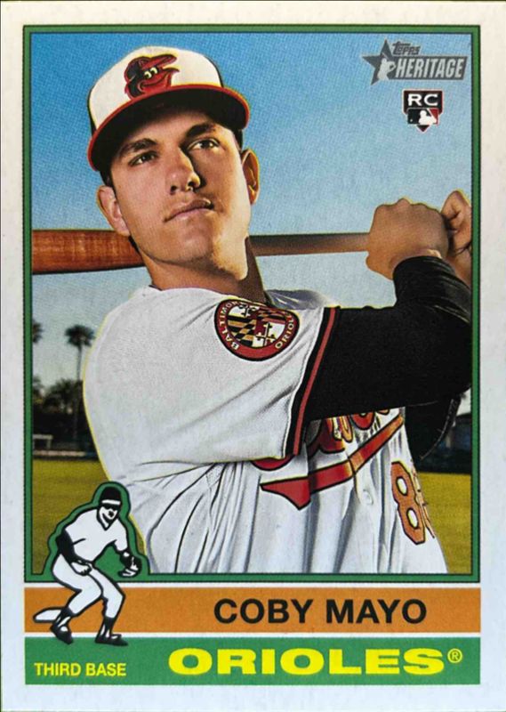 The Coby Mayo 2025 Topps Heritage #340 Base Rookie card in Raw condition has moved up $1.00 (+101%) in the last 30 days and was last sold for $1.99 .