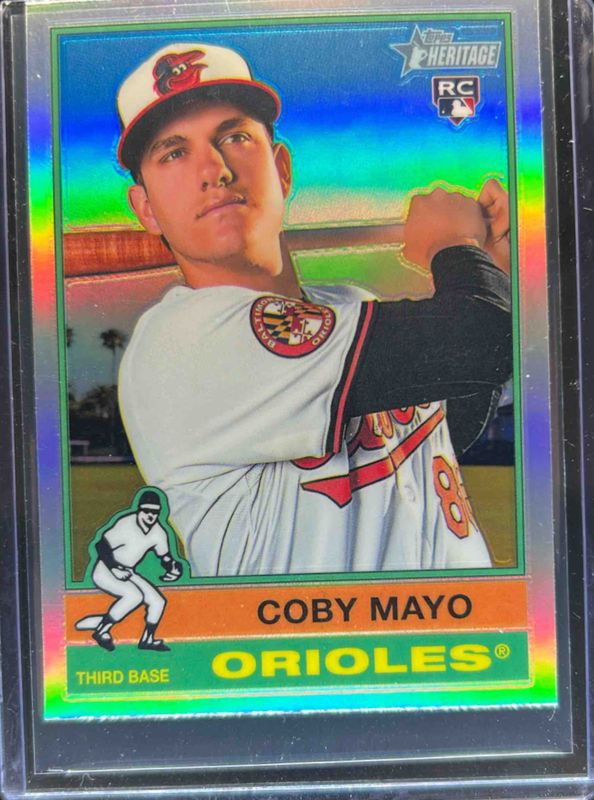 This card is 1 of 30 Coby Mayo's card variations in the 2025 Topps Heritage set being tracked by Sports Card Investor, including Base, Black Border, Dark Blue Border, Dark Green Border, and Dark Yellow Border.