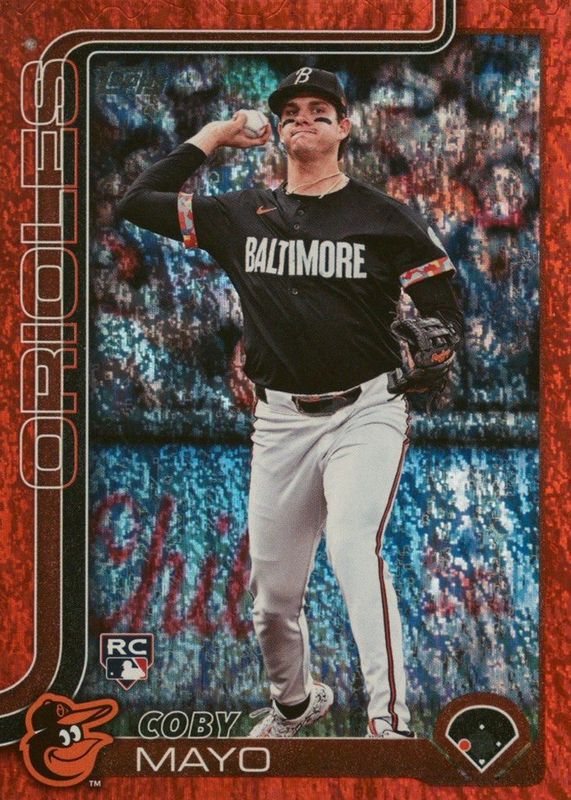 This card is 1 of 234 Coby Mayo's card variations in the 2025 Topps set being tracked by Sports Card Investor, including Base, Aqua Holo Foil, Aqua Rainbow, Diamante Foil, and Eggs.