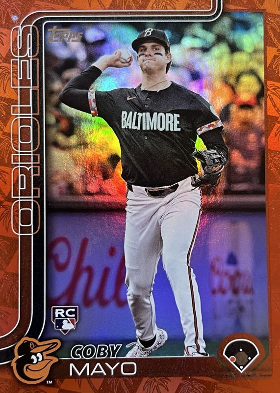 This card is 1 of 234 Coby Mayo's card variations in the 2025 Topps set being tracked by Sports Card Investor, including Base, Aqua Holo Foil, Aqua Rainbow, Diamante Foil, and Eggs.