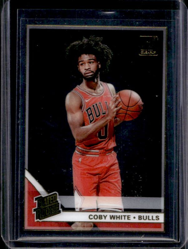 The Coby White 2019 Clearly Donruss #56 Gold Rookie card is 1 of 33 Coby White's card variations in the 2019 Clearly Donruss set being tracked by Sports Card Investor, including Base, #56 Base, #CA-CWT Rated Rookie Autographs - Holo Mosaic, #V56 Rated Rookie Variation, and #10 The Rookies - Holo Mosaic.