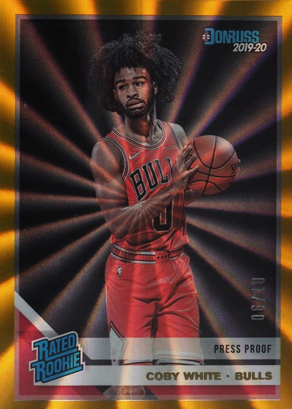 The Coby White 2019 Donruss #206 Press Proof Gold Laser /10 Rookie card in Raw condition has not changed in price in the last 30 days.