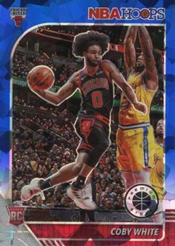 The Coby White 2019 Hoops Premium Stock #204 Blue Cracked Ice Rookie card is 1 of 49 Coby White's card variations in the 2019 Hoops Premium Stock set being tracked by Sports Card Investor, including Base, Flash, Pulsar, Shimmer, and Silver Laser.