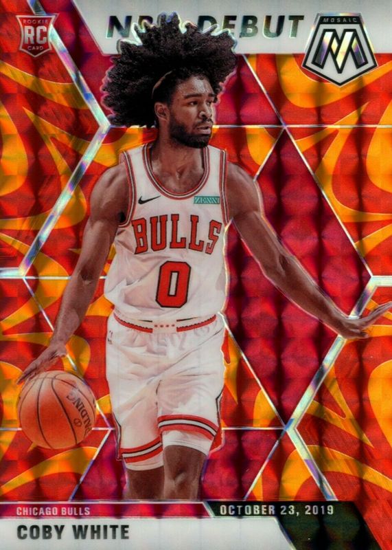 The Coby White 2019 Mosaic #264 NBA Debut - Reactive Orange Rookie card in Raw condition has not changed in price in the last 30 days and was last sold for $9.00 .