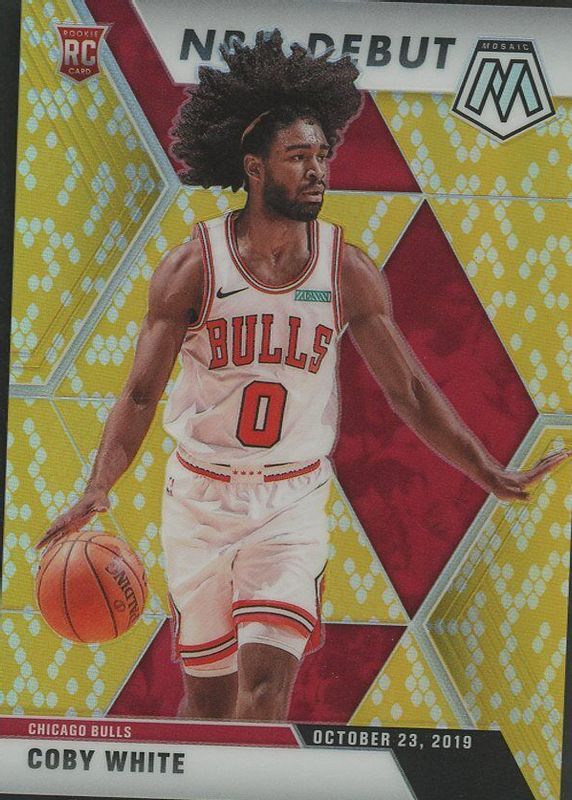 The Coby White 2019 Mosaic #264 NBA Debut - Snakeskin Gold /8 Rookie card in Raw condition has not changed in price in the last 30 days and was last sold for $85.00 .