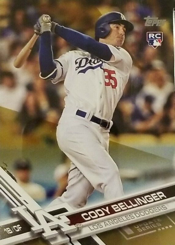 The Cody Bellinger 2017 Topps Update #US50 Gold /2017 Rookie card in Raw condition has moved up $30.27 (+392%) in the last 30 days and was last sold for $38.00 .