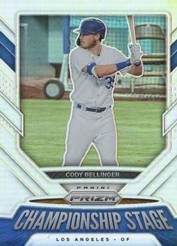 The Cody Bellinger 2021 Prizm #CS1 Championship Stage - Silver card is 1 of 94 Cody Bellinger's card variations in the 2021 Prizm set being tracked by Sports Card Investor, including Base, Blue, Blue Velocity, Carolina Blue, and Cosmic Haze.