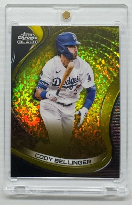The Cody Bellinger 2022 Topps Chrome Black #80 Gold Mini Diamond Refractor /50 card is 1 of 20 Cody Bellinger's card variations in the 2022 Topps Chrome Black set being tracked by Sports Card Investor, including Base, Refractor /199, Purple Mini Diamond Refractor /150, Green Atomic Refractor /99, and Green Refractor /99.