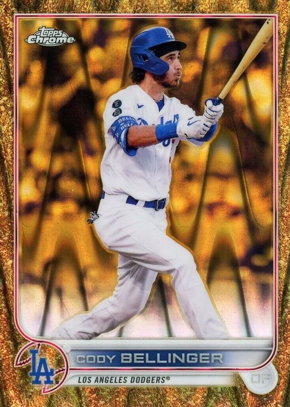 This card is 1 of 5 Cody Bellinger's card variations in the 2022 Topps Gilded Collection set being tracked by Sports Card Investor, including Base /99, Mini-Diamond Gold Etch Refractor /50, Lava Gold Etch Refractor /10, and Superfractor /1.