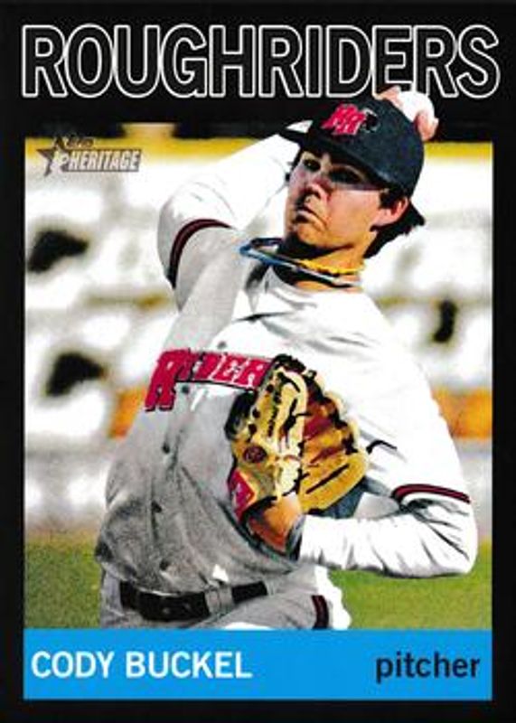 The Cody Buckel 2013 Topps Heritage Minor League #199 Black /96 card is 1 of 14 Cody Buckel's card variations in the 2013 Topps Heritage Minor League set being tracked by Sports Card Investor, including Base, Venezuelan, Blue /1, Printing Plates Black /1, and Printing Plates Cyan /1.