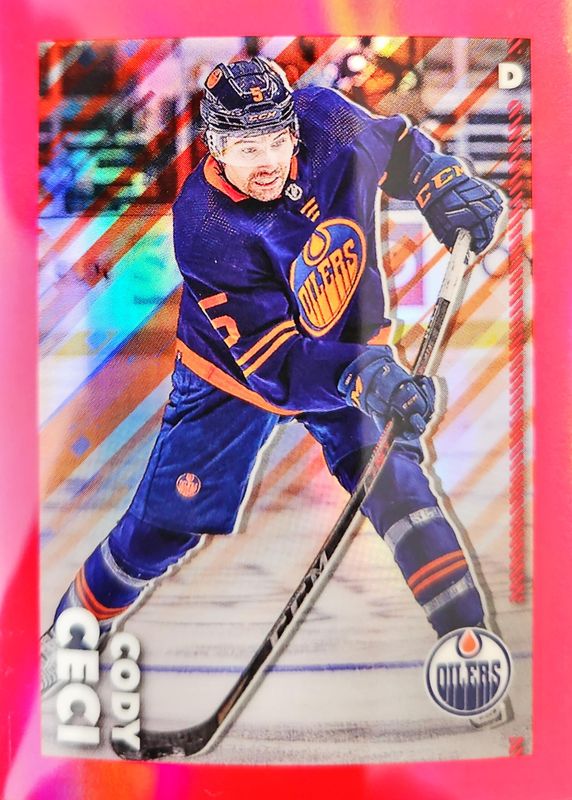 This card is 1 of 6 Cody Ceci's card variations in the 2022 Topps Chrome NHL Sticker Collection set being tracked by Sports Card Investor, including Base, Refractor /99, Gold Refractor /50, Orange Refractor /25, and Superfractor /1.
