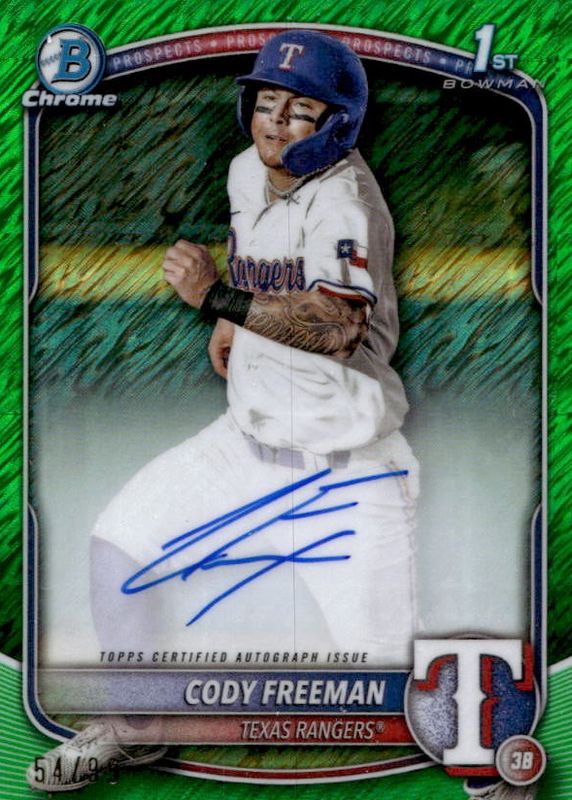Cody Freeman 2025 Bowman #CPA-CFR Chrome Prospect Auto - Green Shimmer Refractor /99 (1st) RAW Price Guide