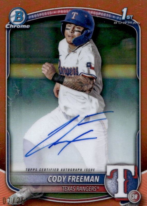 Cody Freeman 2025 Bowman #CPA-CFR Chrome Prospect Auto - Orange Refractor /25 (1st) RAW Price Guide