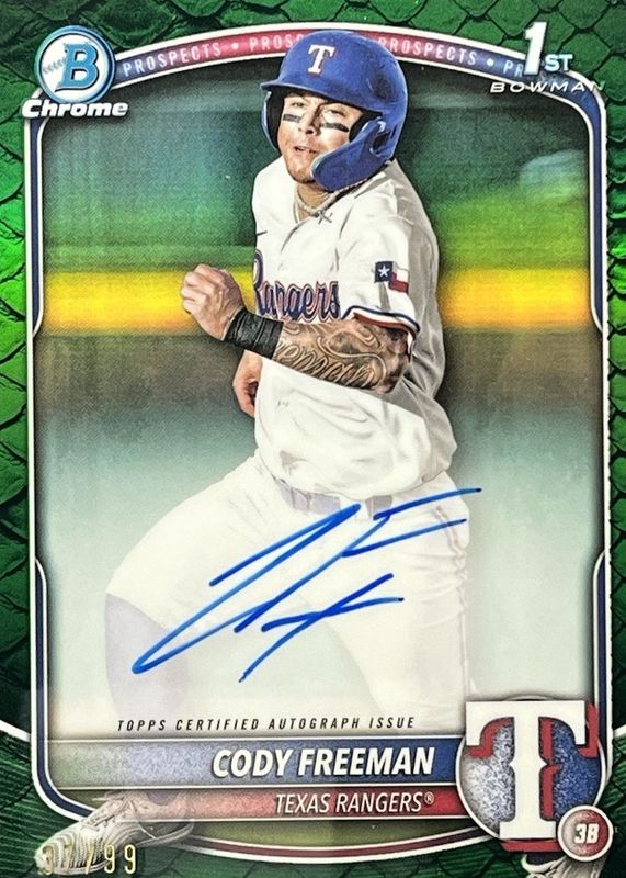 2025 Bowman Cody Freeman Green Reptilian /99 Chrome 1st Autograph Rangers