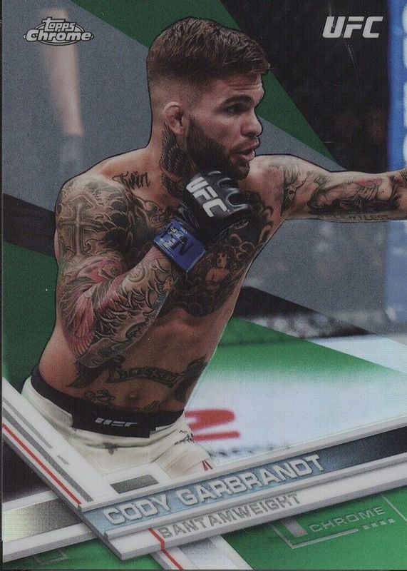 The Cody Garbrandt 2017 Topps Chrome UFC #58 Green Refractor /99 card in Raw condition has not changed in price in the last 30 days and was last sold for $7.75 .