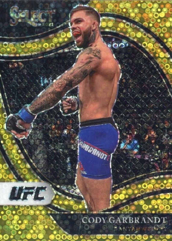 This card is 1 of 48 Cody Garbrandt's card variations in the 2021 Select UFC set being tracked by Sports Card Investor, including Concourse Disco, Concourse Scope, Concourse Silver, Concourse Tri-Color, and Octagonside Disco.