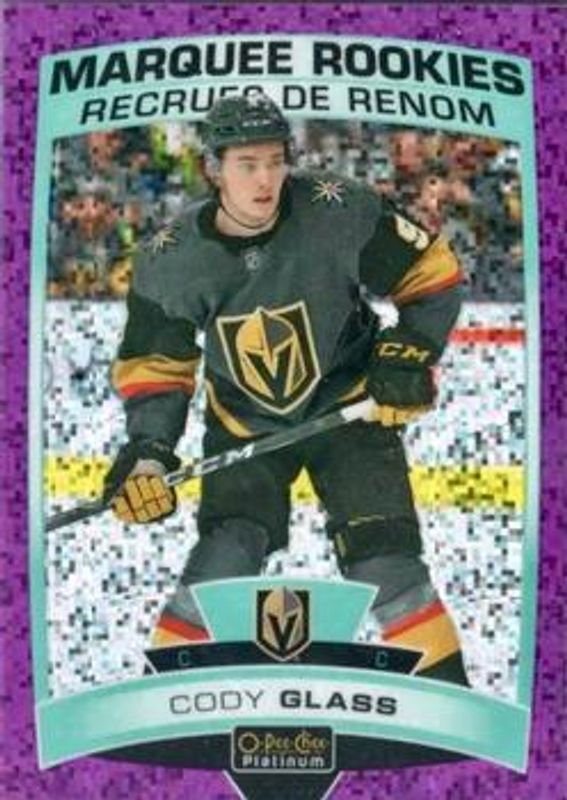 The Cody Glass 2019 O-Pee-Chee Platinum #180 Violet Pixels /399 Rookie card is 1 of 21 Cody Glass' card variations in the 2019 O-Pee-Chee Platinum set being tracked by Sports Card Investor, including Base, Matte Pink, Rainbow, Sunset, and Red Prism /199.