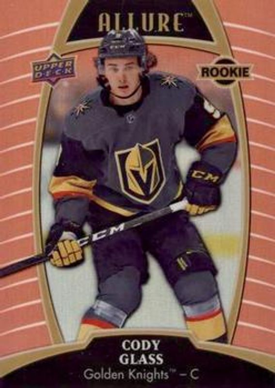 The Cody Glass 2019 Upper Deck Allure #94 Sunset Rookie card is 1 of 45 Cody Glass' card variations in the 2019 Upper Deck Allure set being tracked by Sports Card Investor, including #106 Base, #94 Base, #94 Pewter, #106 Pink Diamond, and #94 Red Rainbow.