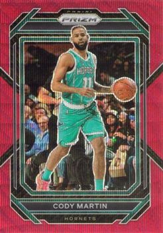 The Cody Martin 2022 Prizm #156 Ruby Wave card is 1 of 53 Cody Martin's card variations in the 2022 Prizm set being tracked by Sports Card Investor, including Base, Blue Wave, Choice Blue Yellow Green, Fast Break, and Green.