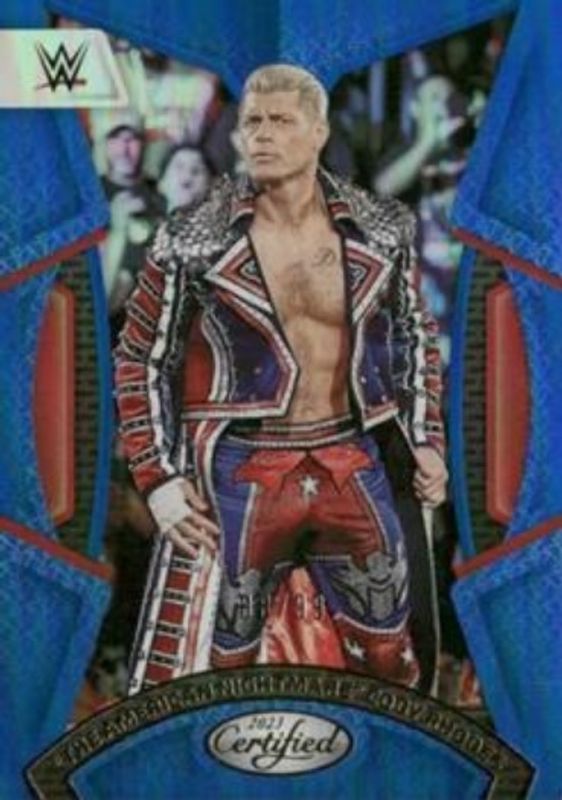 The Cody Rhodes 2023 Chronicles WWE #223 Blue /99 card is 1 of 105 Cody Rhodes' card variations in the 2023 Chronicles WWE set being tracked by Sports Card Investor, including #175 Base, #223 Base, #24 Base, #255 Base, and #307 Base.