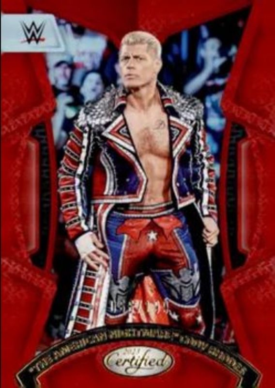 The Cody Rhodes 2023 Chronicles WWE #223 Red /199 card is 1 of 105 Cody Rhodes' card variations in the 2023 Chronicles WWE set being tracked by Sports Card Investor, including #175 Base, #223 Base, #24 Base, #255 Base, and #307 Base.