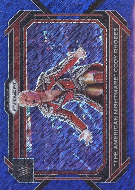 The Cody Rhodes 2023 Prizm WWE #1 Blue Shimmer /11 card in Raw condition has not changed in price in the last 30 days and was last sold for $157.50 .
