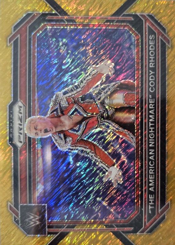The Cody Rhodes 2023 Prizm WWE #1 Gold Shimmer /5 card in Raw condition has not changed in price in the last 30 days and was last sold for $650.00 .