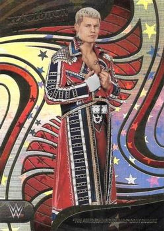 The Cody Rhodes 2023 Revolution WWE #17 Astro card is 1 of 29 Cody Rhodes' card variations in the 2023 Revolution WWE set being tracked by Sports Card Investor, including Base, Fractal, Galactic, Groove, and Impact /199.