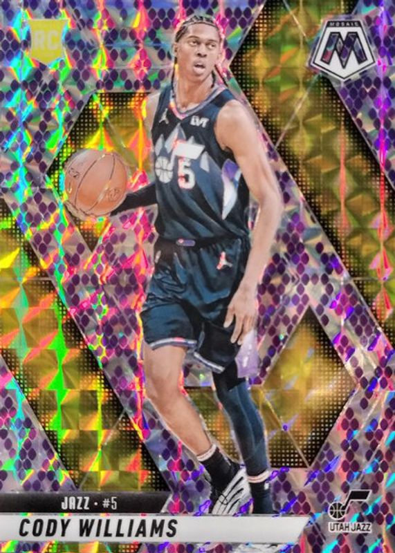 This card is 1 of 67 Cody Williams' card variations in the 2024 Mosaic set being tracked by Sports Card Investor, including Base, Choice Red & Green, Fast Break, Green, and Green Ice.