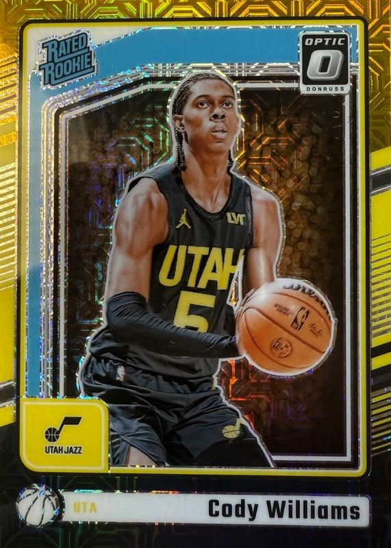 This card is 1 of 130 Cody Williams' card variations in the 2024 Optic set being tracked by Sports Card Investor, including Base, Blue Velocity, Checkerboard, Choice, and Fast Break.