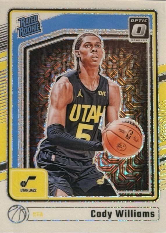 This card is 1 of 131 Cody Williams' card variations in the 2024 Optic set being tracked by Sports Card Investor, including Base, Blue Velocity, Checkerboard, Choice, and Fast Break.