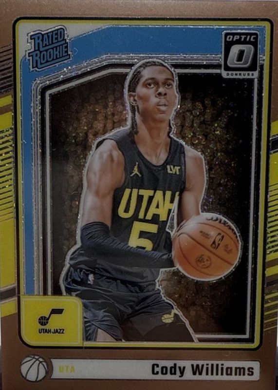 This card is 1 of 131 Cody Williams' card variations in the 2024 Optic set being tracked by Sports Card Investor, including Base, Blue Velocity, Checkerboard, Choice, and Fast Break.