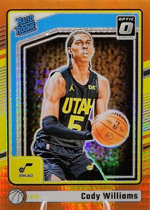 The Cody Williams 2024 Optic #298 Hyper Orange /299 Rookie card in Raw condition has not changed in price in the last 30 days and was last sold for $1.50 .