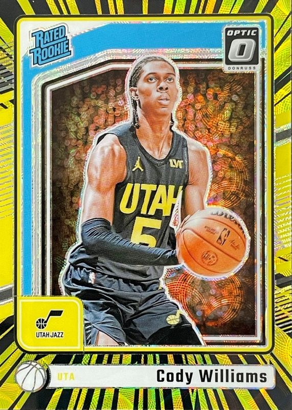 This card is 1 of 130 Cody Williams' card variations in the 2024 Optic set being tracked by Sports Card Investor, including Base, Blue Velocity, Checkerboard, Choice, and Fast Break.