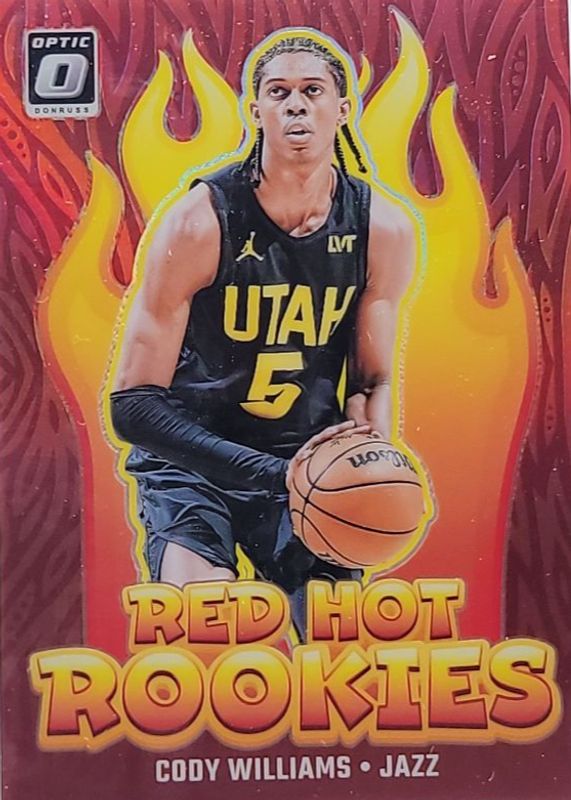 The Cody Williams 2024 Optic #14 Red Hot Rookies - Red /99 card in Raw condition has not changed in price in the last 30 days and was last sold for $3.00 .